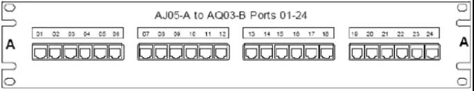 例如,圖4和圖5顯示了24位配線架使用的標(biāo)簽,24根6類電纜連接到AJ05到AQ03機(jī)柜(見如圖2)。